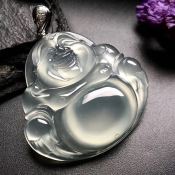 冰种晴水笑口常开 佛翡翠吊坠 尺寸: 36-39-8mm
