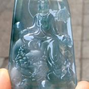 高冰飘花观音 翡翠挂件 尺寸: 64-43-7mm