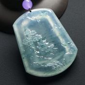冰种飘花大好河山 翡翠吊坠 尺寸:54-42-7毫米