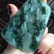 高冰种阳绿的如意吊坠冰透水润尺寸:36*23.6*10