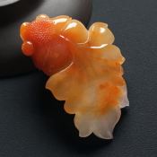 巧雕红翡年年有余吊坠 尺寸:55-34-11.5毫米