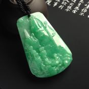 糯冰种满色阳绿深山会友翡翠吊坠 尺寸56-38-13毫米