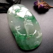 冰种飘翠淡泊人生 翡翠吊坠 尺寸46-31-7毫米
