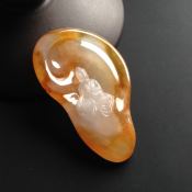 糯冰种红翡犹抱琵琶半遮面 翡翠吊坠 尺寸71-34-18毫米