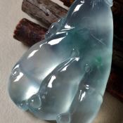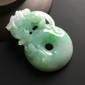 冰种带色 瑞兽呈祥翡翠挂件 尺寸62-40-7.5毫米