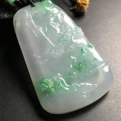 冰种飘翠山水牌翡翠挂件 尺寸71-45-9.5毫米