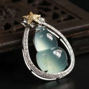 冰绿大葫芦 翡翠吊坠 冰地光泽