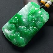 巧雕阳绿大好河山翡翠吊坠 尺寸:62-38-10毫米