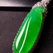 阳绿如意 翡翠挂件 尺寸35.2*26.8*4.8mm