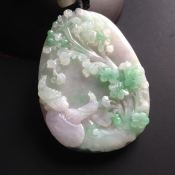巧雕春带彩花鸟 翡翠吊坠 尺寸51-36-7.5毫米