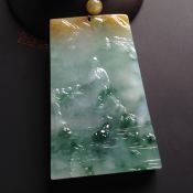 冰种飘花 大好河山翡翠吊坠 尺寸:54-35.7-6毫米
