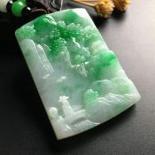 冰种阳绿山水牌 翡翠吊坠 裸石大小:24.6*17.3*4mm