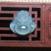 冰晴底佛公 翡翠吊坠 水润冰透