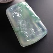 冰种飘花山水牌 翡翠吊坠 尺寸49-34-7毫米