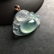 冰带色弥勒佛 翡翠吊坠 尺寸:44-24-6mm