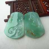 糯种飘绿 翡翠龙凤呈祥玉佩一对 规格:56*39*6mm和56.5*39*7mm