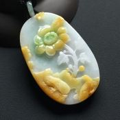 巧雕黄加绿花开富贵翡翠吊坠 尺寸:56-35-6.4毫米