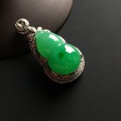 冰种阳绿 葫芦翡翠吊坠 白金镶嵌 整体尺寸31-19-13.5毫米