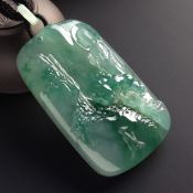 辣绿高山意境牌翡翠挂件 尺寸:34.5*23.1*2.8mm