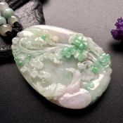 飘绿鸟语花香 翡翠吊坠 尺寸: 53.5-39.5-8.5mm