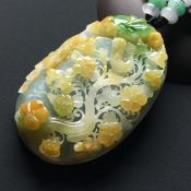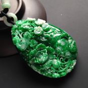 巧雕阳绿花开富贵翡翠吊坠 尺寸62-43-13毫米