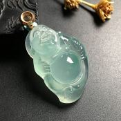 冰种蓝晴布袋佛 佛翡翠吊坠 18K金扣 尺寸35-23-15毫米