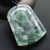 高冰种飘花 大好河山翡翠吊坠 尺寸:56-41-7.6毫米