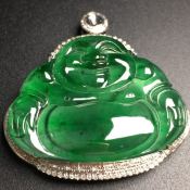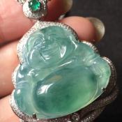 蓝水大佛 佛翡翠吊坠 完美无纹裂 18k金伴钻
