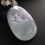糯冰种紫罗兰松下抚琴翡翠吊坠 尺寸56-37-7毫米