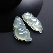 冰种荧光 灵猴翡翠吊坠 2件 尺寸大25-13-5毫米(一对)