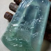 冰种飘翠山水牌 翡翠吊坠 尺寸53-40-5毫米