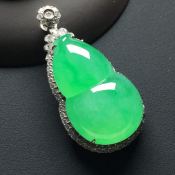 冰种阳绿 葫芦翡翠吊坠 白金扣 整体尺寸22-17-8毫米