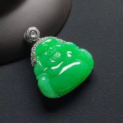 冰种阳绿翡翠吊坠笑佛 尺寸:32.8-27-8.6
