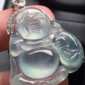 冰种布袋佛 翡翠吊坠 真金真钻镶嵌 完美 种水超好