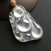 冰种大肚笑佛18k金扣 翡翠挂件 尺寸:23.5-30-6.3毫米