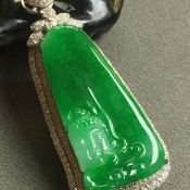 天然翡翠A货冰种满绿佛在心中牌翡翠吊坠
