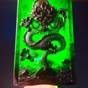 玻璃种墨翠龙牌挂件 尺寸66.6*43.8*6.5