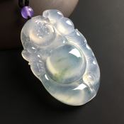 冰种飘花布袋佛 翡翠吊坠 尺寸50-32-7毫米