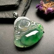 冰晴底佛公 翡翠吊坠 肉质细腻 水润完美 漂亮起光