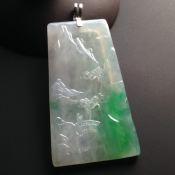 冰种晴底飘花淡泊人生 翡翠挂件 尺寸62-35-4mm
