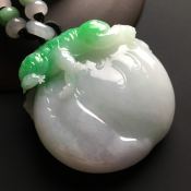 糯冰种春带彩紫气东来 翡翠吊坠 尺寸48-32-6毫米