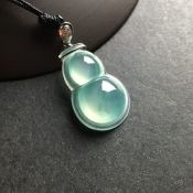 冰种飘花 葫芦翡翠吊坠 白金扣 尺寸22-14-6.4毫米