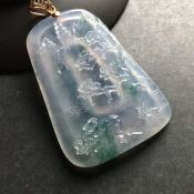 冰种飘花山水牌翡翠吊坠 18K金扣 尺寸53-38-7.5毫米