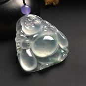 冰种飘花布袋佛 佛翡翠吊坠 尺寸46-42-9毫米