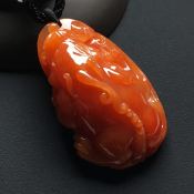 巧雕红翡 瑞兽吊坠 尺寸:53-33-15.5毫米
