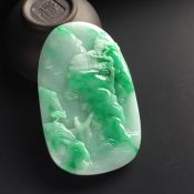 冰种阳绿山水牌 翡翠吊坠 裸石大小:31.8*20.3*3mm