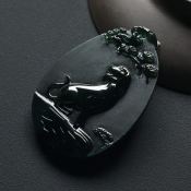冰种墨翠 旺财挂件 尺寸:47-32-6.4毫米