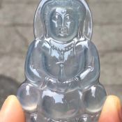 冰种飘花翡翠佛公 佛翡翠吊坠 尺寸28-26-7毫米