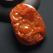 巧雕红翡花开富贵 翡翠吊坠 尺寸:55-37-12毫米