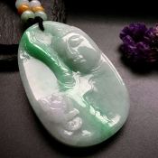 冰糯种满绿佛公 翡翠吊坠 尺寸19.5*20.9*6.3